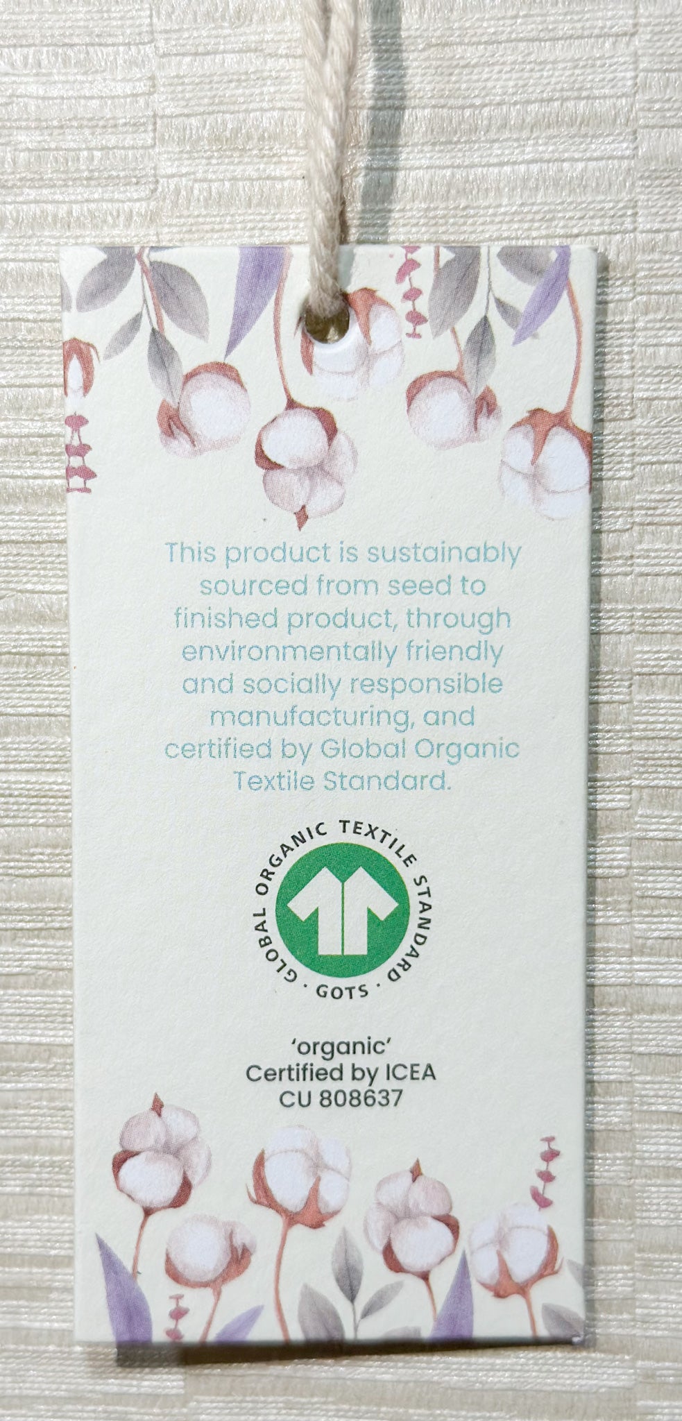 From the beginning of our process, we've decided, only to have the entire garment GOTS certified, which means that not only the fibres are organic but all the processes that follow hence are all done using the GOTS guidelines by GOTS certified supplies only.